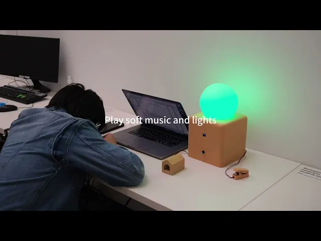 This is Dot, an interactive burnout-relief device that detects an user’s real-time heart rate through a wearable sensor and responds with light, sound, and guided break or power-nap routines.